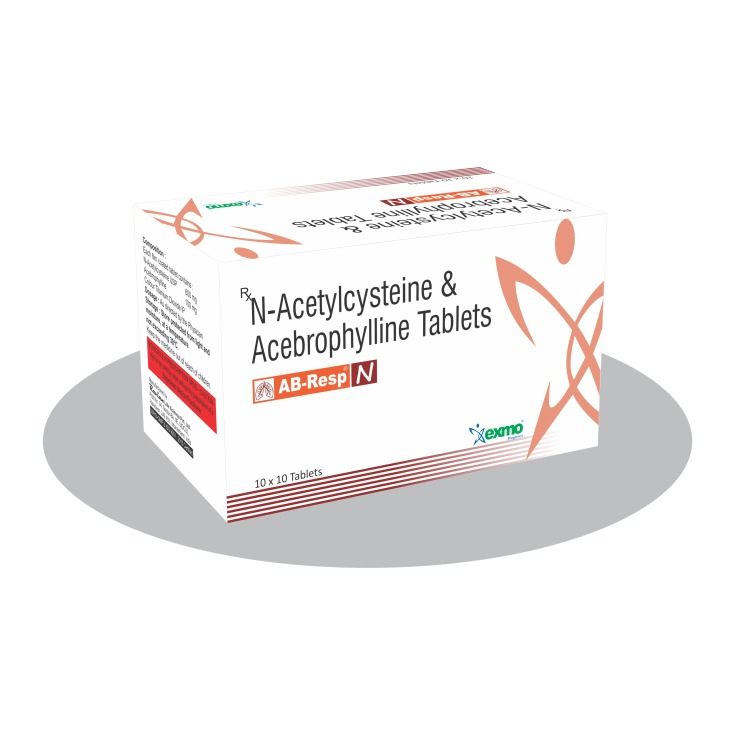 AB Resp N Tablet is a combination of two drugs: Acebrophylline (a mucolytic and bronchodilator) and N-acetylcysteine (a mucolytic agent/sputum thinner). Acebrophylline works by relaxing muscles and widening the airways of the lungs. N-acetylcysteine works by thinning and loosening phlegm (mucus) in the lungs, windpipe, and nose. Together, AB-Resp N helps cough out easily and makes breathing easier by opening airways.