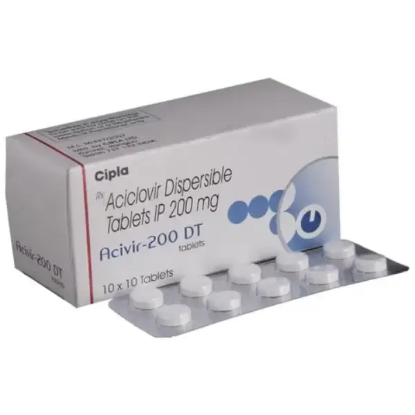 Acivir 200 DT Tablet is an antiviral medication. It prevents the multiplication of virus in human cells. This stops the virus from producing new viruses and clears up your infection.
