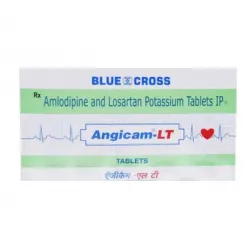 Angicam LT Tablet combines Losartan and Amlodipine, two medicines that lower blood pressure through different mechanisms. Losartan blocks the action of angiotensin II, a substance that tightens blood vessels. This helps blood vessels stay relaxed and open. Amlodipine blocks calcium from entering blood vessel walls, further relaxing the arteries. Together, these actions reduce resistance in the blood vessels and lower the force your heart needs to pump. This not only brings down blood pressure but also improves oxygen and nutrient delivery across the body. The heart works more efficiently and with less strain. As a result, the risk of heart-related complications is reduced. Regular use as prescribed is important for sustained benefit. Stopping the medicine suddenly may worsen your condition or cause blood pressure to rise again. Taking the tablet at the same time daily, with or without food, ensures consistent control of blood pressure.