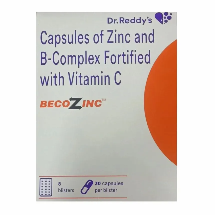 Becozinc Capsule is a nutritional supplement formulated to correct vitamin and mineral deficiencies while strengthening the immune system. It combines essential nutrients such as vitamins B-complex, vitamin C, and zinc, which play vital roles in energy production, metabolism, and overall body function. This supplement is especially beneficial for individuals with poor dietary habits, restrictive diets, or increased nutritional needs due to stress, age, illness, or surgery recovery. It supports the body’s natural defense mechanisms and enhances overall vitality. Becozinc helps maintain proper nerve function, promotes tissue repair, and assists in the formation of red blood cells. It is recommended for elderly individuals, diabetic patients, and those recovering from illness or surgery to restore nutritional balance and promote faster healing.