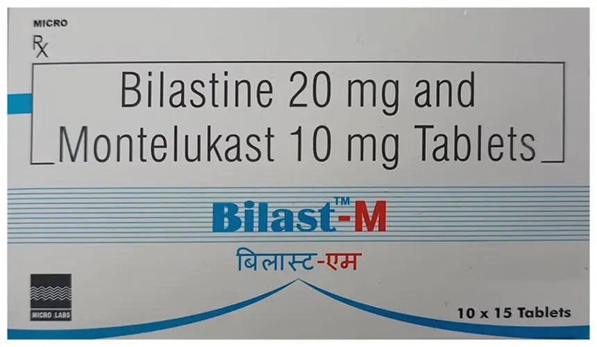 Bilast M Tablet is a combination prescription medication primarily used to treat allergic rhinitis (commonly known as hay fever) and other allergic conditions. It provides relief from symptoms such as sneezing, runny or blocked nose, itchy or watery eyes, nasal congestion, and general inflammation caused by allergens like dust, pollen, pet dander, or mold. This dual-action tablet contains two active ingredients: Bilastine, a non-sedating antihistamine, and Montelukast, a leukotriene receptor antagonist. Together, these components help manage allergic symptoms and improve breathing, especially in patients who experience both respiratory and skin-related allergy symptoms.