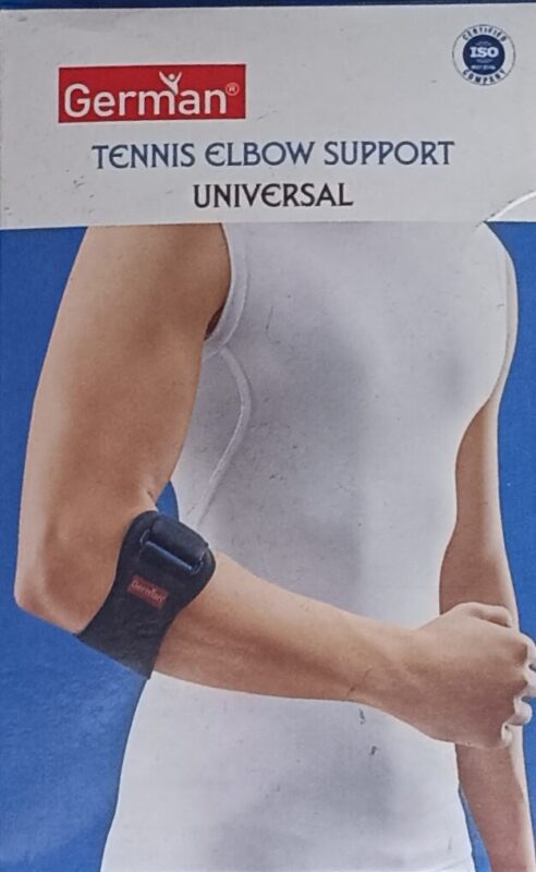 Supports elbow movement during sports activities! Elbow Support designed for the relief of Tennis Elbow & Golfers Elbow. The German Tennis Elbow Support supports the movement of the elbow during sports and helps protect against overloading. The support exerts a beneficial massaging action on the connective tissue and muscles during movement, thus supporting the sensory motor function of the entire joint.
