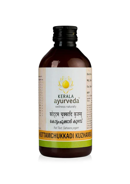 Kerala Ayurveda Kottamchukkadi Kuzhambu is a traditional Ayurvedic herbal oil blend formulated to promote musculoskeletal health and Vata balance. Widely used in Ayurvedic therapies like Abhyanga (therapeutic massage) and Dhara, this time-honored oil combines powerful herbs like Kottam (Saussurea lappa), Chukku (Dry Ginger), and Vacha (Acorus calamus) to provide deep nourishment and soothing relief to joints and muscles. Known for its Snehana (oleation) and anti-inflammatory properties, it is ideal for supporting joint flexibility, mobility, and muscle relaxation in your daily wellness routine.