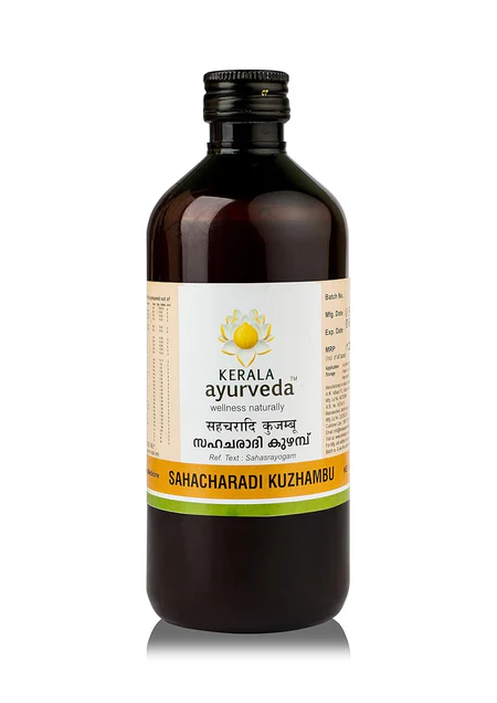 Kerala Ayurveda Sahacharadi Kuzhambu is a classical Ayurvedic oil made with Sahachara and other Vata-balancing herbs in a nourishing base of sesame oil and milk. This is known to support joint and muscle comfort, promote flexibility, and help ease stiffness. Its deep-penetrating action and warming properties make it ideal for supporting healthy movement and musculoskeletal vitality as part of daily or therapeutic routines.