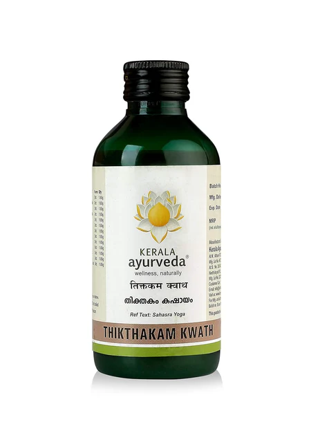 Kerala Ayurveda Thikthakam Kwath is a time-honored Ayurvedic herbal decoction crafted to restore balance and promote holistic wellness. Made with potent bitter herbs like Neem, Patola, and Guduchi, this formulation is deeply rooted in classical Ayurvedic texts and traditions. Renowned for its cooling and purifying properties, Thikthakam Kwath is ideal for those seeking natural support for skin health, liver function, and digestive harmony.